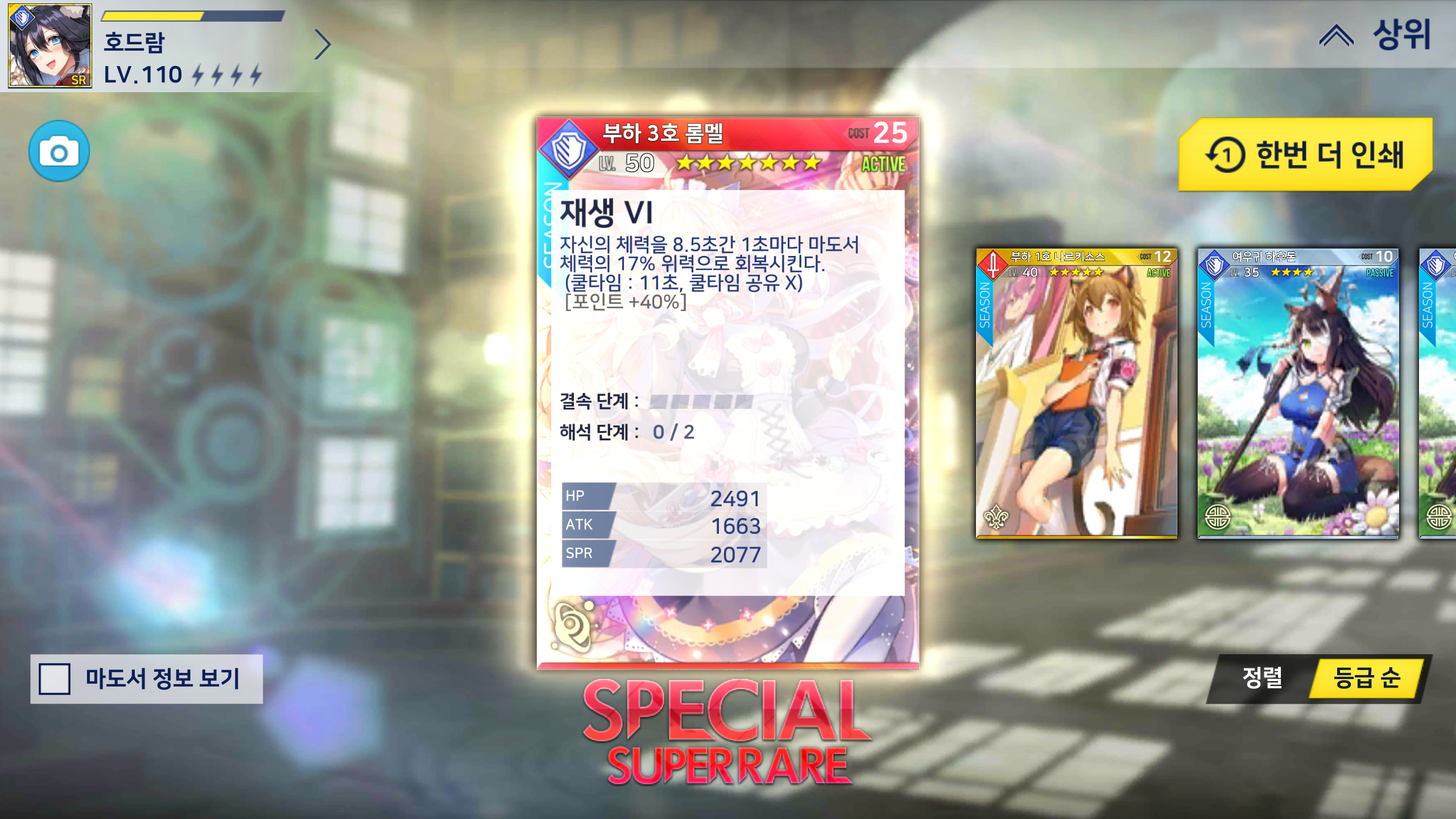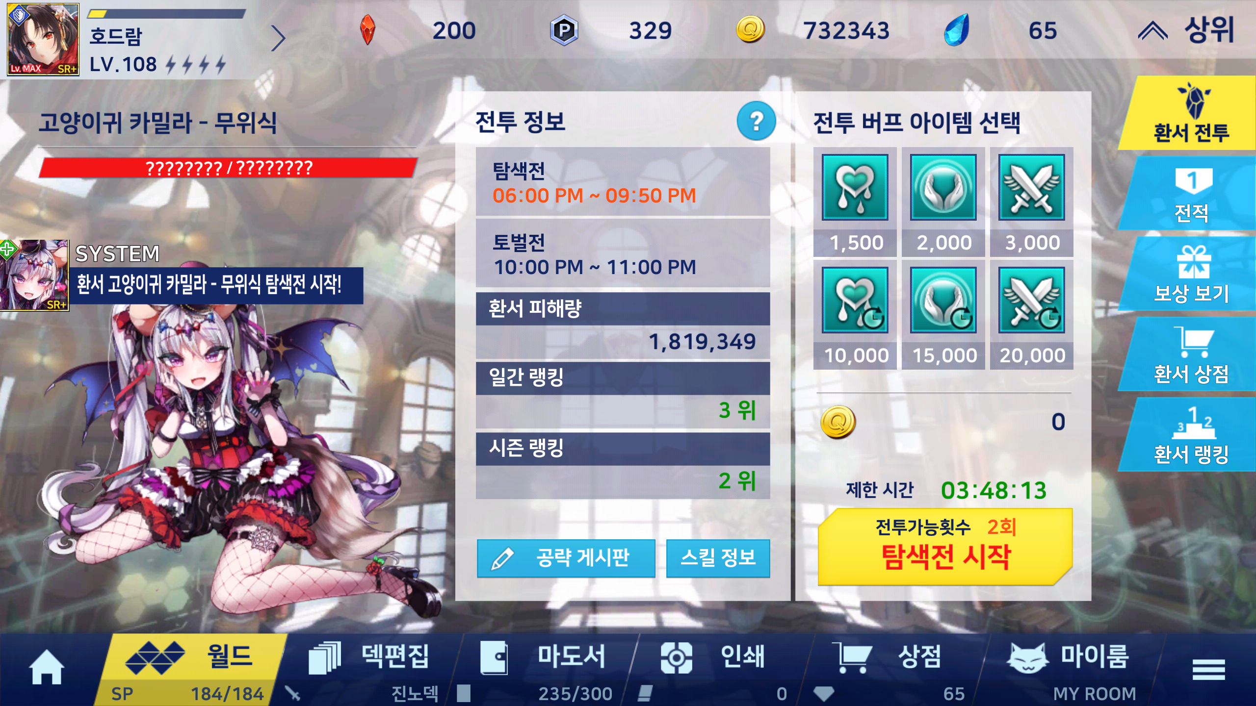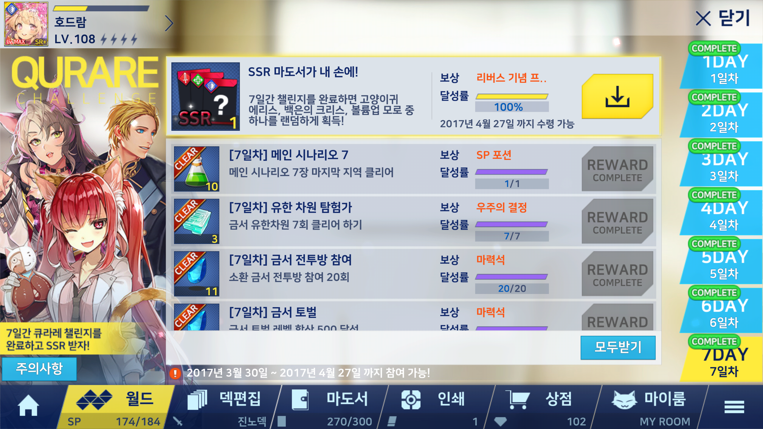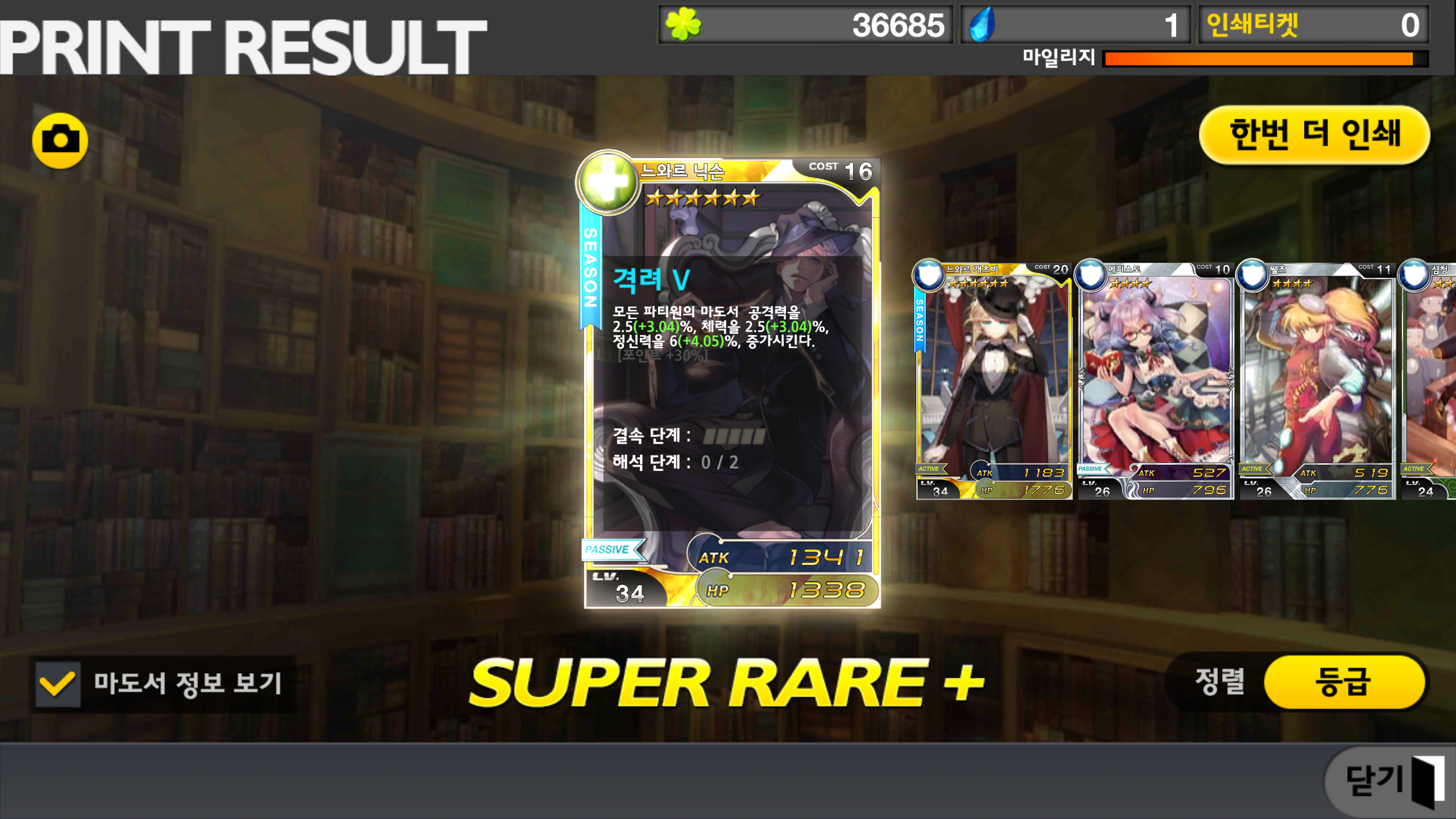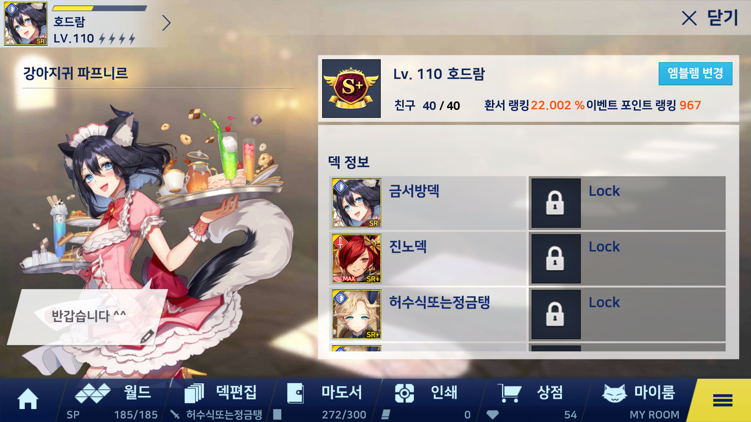 이 스샷을 마지막으로 큐라레 마법도서관의 운영에 지쳐서 게임을 접고
