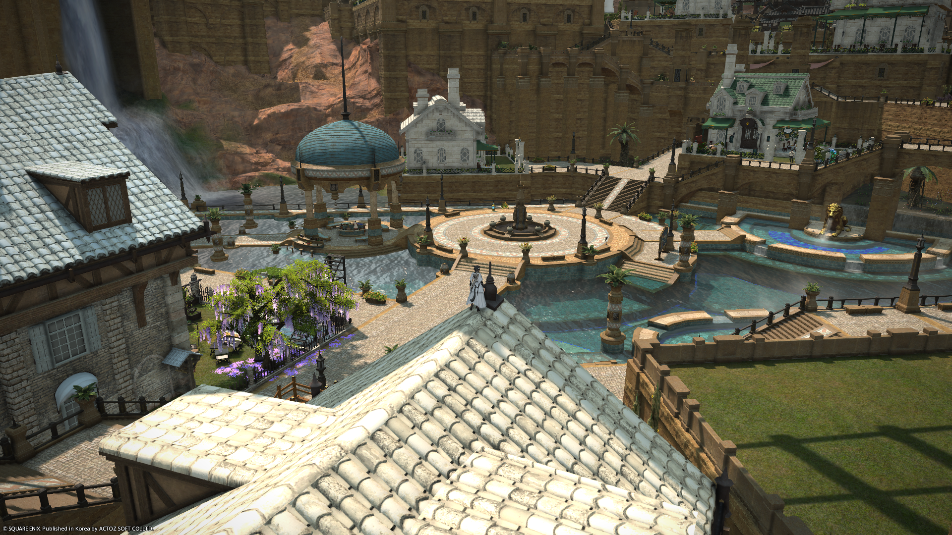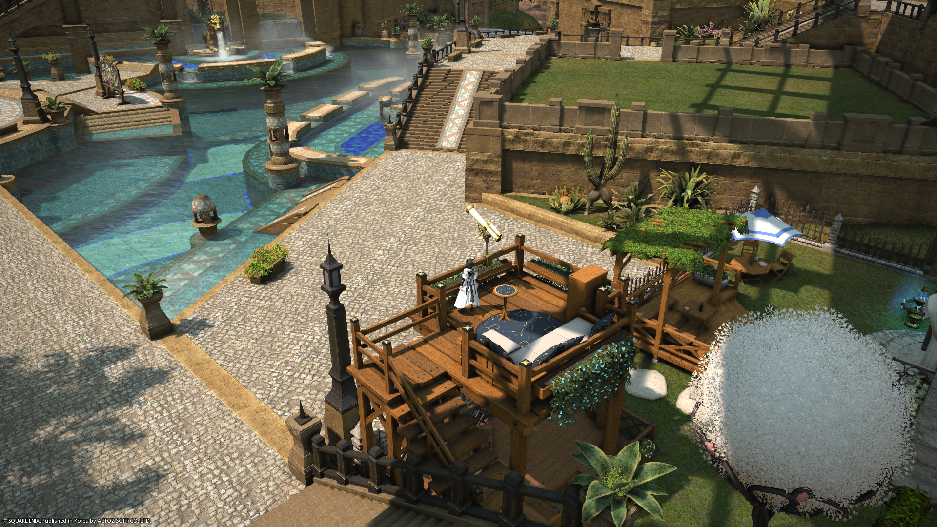 하늘잔마루의 중앙 온천구역 주변은 파판14에서도 인기가 많은 하우징 명당중의 하나입니다.
