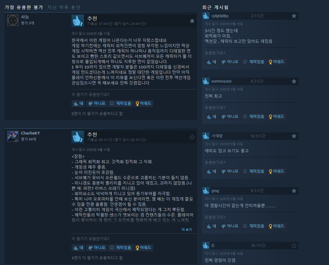 스팀 스텔라 블레이드의 최근 리뷰를 살펴보겠습니다.