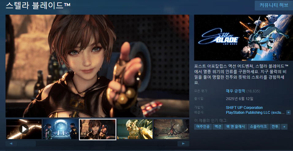 스텔라 블레이드의 PC 스팀 버전의 최근 평가는 매우 긍정적입니다.